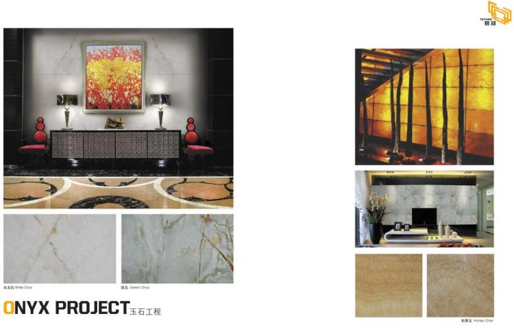 Oniks je dostupan u široku lepezu boja i dezena, što je opcija za soma za pultovi, sujeta vrhove, barovi, unutrašnjih poslova podne obloge i obloge za zid.