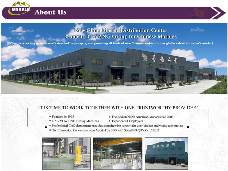 Xiamena Yeyang kamen grupa je na početkukameni proizvođačaosnovan 1993 godine, koja se nalazi u kamenoj rodnom gradu, Xiamen andamp; Shuitou andamp; Nantong grad blizu Shanghai.
